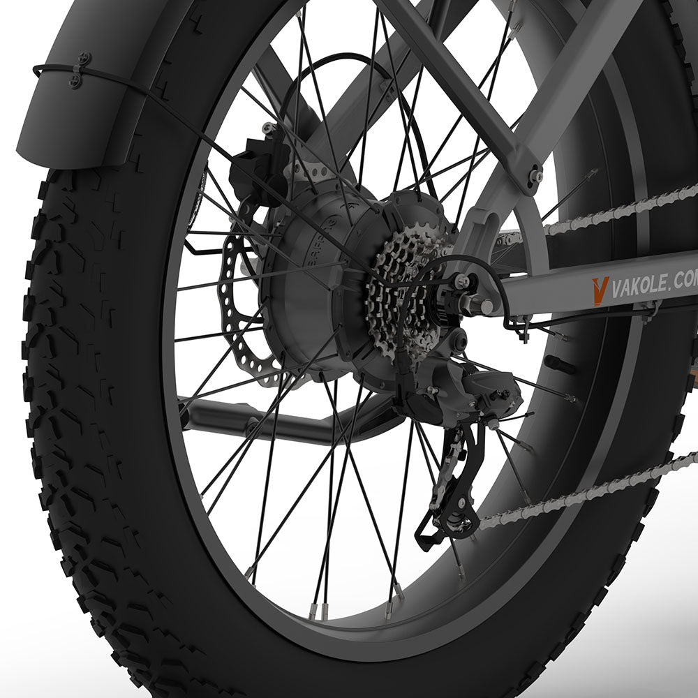 Le VAKOLE TR26 est équipé de pneus KENDA de 26 x 4,0″ de large, extrêmement résistants aux coupures et à l’usure. Le tissu tissé serré est léger et très flexible. Pour que la performance du pneu ne soit pas affectée par l’excellente adhérence, le design du profil assure une bonne adhérence et une bonne stabilité. Le dessin de la bande de roulement est profond et large, et le drainage est bon. Il est très bien adapté à la conduite sur la neige, en montagne et sur les routes accidentées, même pour la chasse.